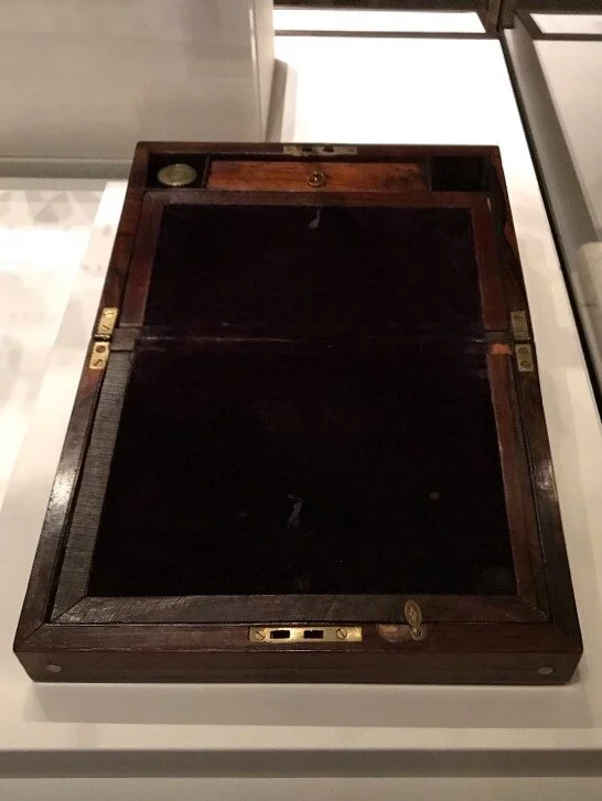 Also super neat: Charlotte Bronte’s writing desk. It’s this tabletop box that had compartments for sheafs of paper and pens and ink and pen nibs, and then she wrote on that rich velvet surface. So luxe.